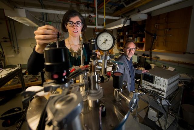 2017年9月,在位于堪培拉的澳大利亞國(guó)立大學(xué),負(fù)責(zé)量子數(shù)據(jù)存儲(chǔ)研究的該大學(xué)副教授馬修·塞拉斯(右)與羅絲·阿勒費(fèi)爾特博士在做實(shí)驗(yàn)。(新華社發(fā),斯圖爾特·海伊攝)